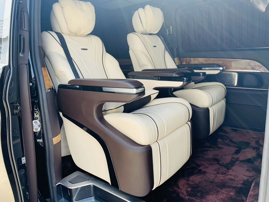 奔驰V级圣母峰-凯旋版全车地毯及窗帘均采用了进口的羊绒材质,在用料方面真的是很用心。第三排座椅不只可以坐人,在旅途劳累的时候也可以一键电动成床进行休息。 这款全新奔驰V级圣母峰-凯旋版,不仅有着非常亮眼的外观,在内饰豪华感方面营造的也非常到位。全车的KEDE siri语音控制系统和先进的人机交互系统都是其它竞品车型没有的,那么这样的一台国六V级座驾,你会喜欢吗?