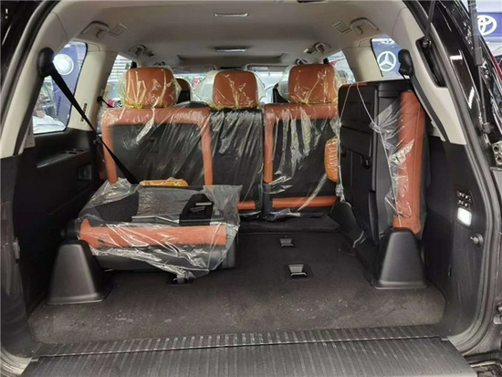 2021款雷克萨斯570中控台及仪表台上方的材质为软性真皮包裹,材质优越,按键及按钮手感好。仪表盘和音响系统控制面板遵循LEXUS雷克萨斯未来设计风格,呈现简洁与易操作的特点。新款雷克萨斯LX570在方向盘、中控台下方增加了仿桃木作为修饰,做工十分精细,而出风口外包围面板、杯座盖、USB盒盖、后座加热控制面板及中控面板上部也均改为高亮度银材质,金属饰板与桃木装饰的搭配很自然。内部宽松舒适的布局则凸显了雷克萨斯一贯的顶级品质追求。LX570拥有可容纳最多达8位乘客的宽裕乘坐和行李存放空间。