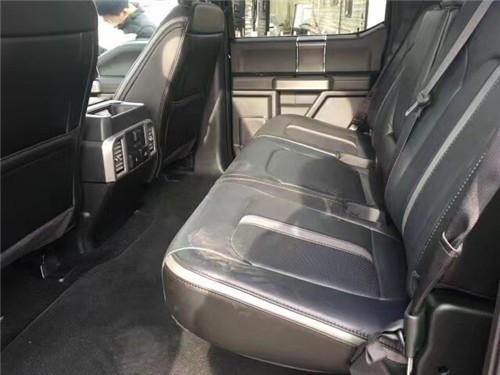 20款福特F150皮卡真皮座椅包裹性很强,无论是越野还是长途旅行,都很舒服,丝毫不感觉到这大家伙的压抑,二排空间也是十分宽敞,乘坐四个身材高大的乘客绝对没问题。座椅折叠起来可以放一个冰箱,而且门上储物格空间也是够用,虽然不像公羊后排那么豪华,有简易床,但是这种实用的理念就是福特的宗旨。