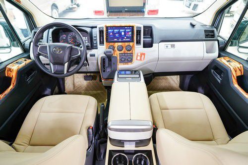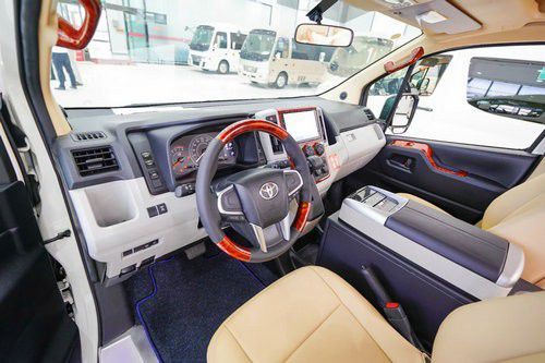 千万不要小看丰田海狮的四速变速箱!每档的切换非常顺而且动力迅猛,高速超车觉对没压力。新丰田海狮为国五排放标准 车身重量: 2035 kg 轴距: 3110 mm 轮距(前/后): 1655/1650mm,长: 5980 mm,宽: 1880 mm,高: 2285 mm。丰田海狮HIACE车厢设计宽敞,中间走道将乘客座椅隔开,更方便乘坐及进出。所有座椅均为高级真皮并配备头枕,每个头枕及椅背均可调节至适宜高