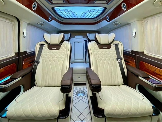 标配的三连电动沙发座椅,全程支持180度电动平躺,豪华双人大床配置。它完美地彰显着车主卓尔不群的尊贵身份和独特品味,诠释了颜值与实力打造出来的艺术品。独具匠心的设计体现在了每一处细节上,力求为车主打造出“移动的办公室”,是商务精英人士的不二之选。