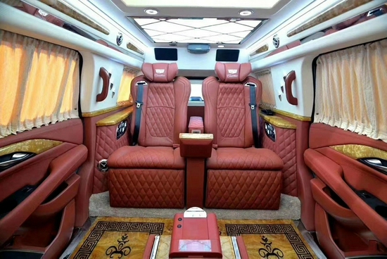 新款凯迪拉克总统一号隐藏六座商务车内饰部分:舱内隔断:可升降分隔屏,32寸超薄液晶电视 音响设备:BOSS环绕音响,DVD 舱内灯饰:氛围灯 LED灯饰,迈巴赫棚顶灯 舱内吧台:酒柜 咖啡机舱内桌板:电动隐藏式伸缩桌板 地板材质:柚木地板舱内天窗:全景开启式大天窗。