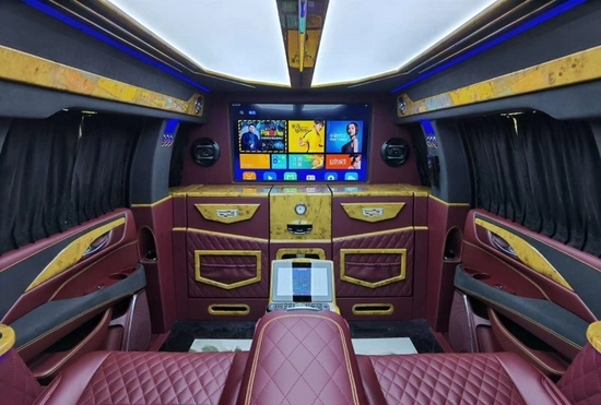 新款凯迪拉克总统一号桌椅设置操控屏,简单方便,扶手台影藏一个简约的储物柜。奢华游艇木地板,有种复古格调凯迪拉克总统一号凯迪拉克总统一号让你在商务谈判中更胜一筹,全车采用真皮包裹拥有透气性、电动按摩及电动加热系统,保证整了质感的同时也保证了座椅的舒适性。
