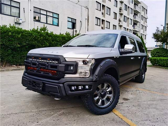 今天给大家带来的这款福特勇猛者以中规国六福特F150 (配置|询价)猛禽为基础进行升级打造,底盘公告升级为了商务车公告,不再有皮卡的强制报废的限制,并且可以进入市区。这对于喜欢大马力以及越野的朋友们来说绝对是一个好消息。
