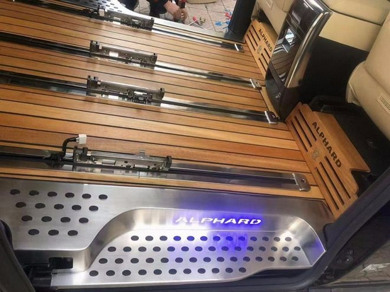 新款老款丰田埃尔法 (配置|询价)、威尔法 (配置|询价)改装雷克萨斯LM套件,埃尔法、威尔法铺木地板、改装4座蒙娜丽莎套件内饰,4座隔断版本内饰报价及案例