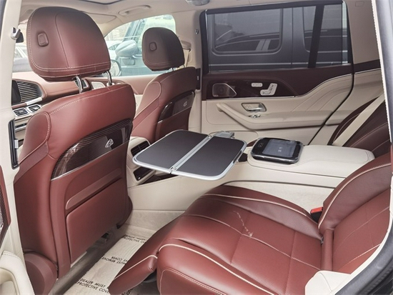 奔驰迈巴赫GLS600座椅配备腿托和头枕,同时支持加热和通风等舒适性配置,后排空间最大能达到1.34米。后排配有专属后排娱乐系统、独立空调、触控 板、遮阳帘、冰箱、恒温杯托、香槟高脚杯的储物箱等。