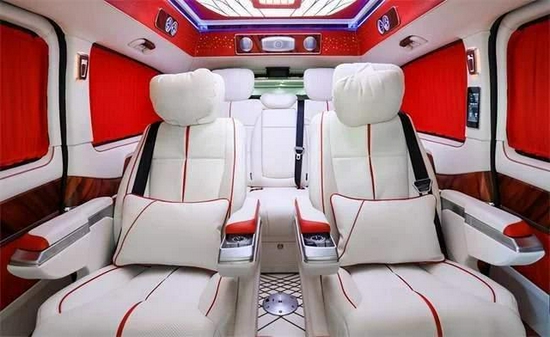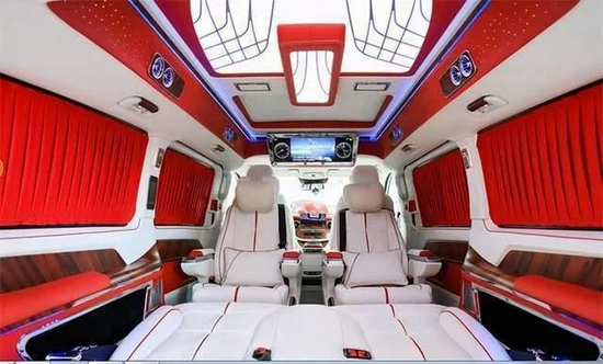 奔驰V (配置|询价)S980星际版,商务黑色耀眼经典款式,与红白车身元气内饰形成强烈反差,更具魅力。试想,发光发亮的黑色商务款式的奔驰,一打开车门,映入眼帘的是,红色与白色交相辉映的装饰,包括座椅,一股朝气蓬勃的元气感,呼之欲出。今日就跟随房车兄弟的脚步,一起走进奔驰VS980星际版,感受我们奔驰的又一款优质车型。
