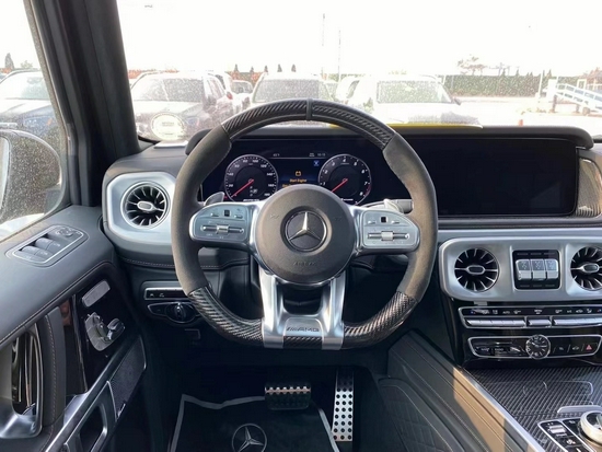 21款加版奔驰G63标配:4.0升V8AMG发动机,577匹马力,AMG变速TCT 9速变速箱,前座椅记忆,前排座椅加热,滑动玻璃天窗,三区气候控制,空气净化,电热挡风玻璃,加热方向盘,AMGNappa真皮性能方向盘,Burmester环绕声系统,苹CarPlay,64色LED环境照明,自动启动/停止,AMG性能排气系统,AMG高性能制动系统,红色的刹车卡钳,AMG控制自适应阻尼架,主动车道保持辅助,盲点辅助,主动刹车辅助,交通标志辅助,主动停车辅助,360度环影,主动多光束LED照明系统,LED日间运行灯,AMG暗夜包 黑色前保险杠22寸熏黑轮 金属漆 金属编织内饰。