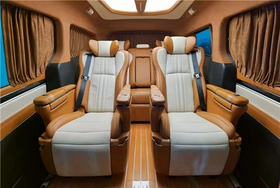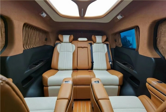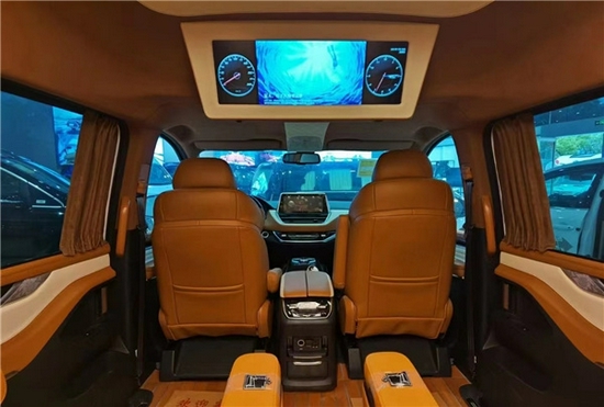 第二排采用的百万级别的艾尔法同款座椅停驶增加了旋转模式对坐模式,整体的内饰颜色搭配是以优雅的米白色和褐色,提高车内的氛围感,星顿天幕的顶棚设计与游艇级柚木地板相应,体现出车主的尊重气质