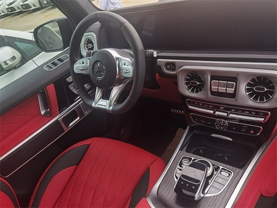 21款奔驰G63原先无论经历如何包装,选用各种高级材料重塑车厢,但从刻板的内饰面貌上只能传递出工具车的印记。如今进入全新奔驰G级的车厢后,能够看到最新奔驰家族化内饰设计,眼前的景象完全看齐自家SUV旗舰。车厢内除了经典的实木饰板外,还应用了金属、碳纤维和皮革等高级材质。2021款奔驰G63中控台中央位置,精心按照1中、2后、3前顺序安放有三把锁的控制按键,内饰布置在保持G级传统功能位置的同时,作以精心优化,做出了符合身价的科技感和豪华感。