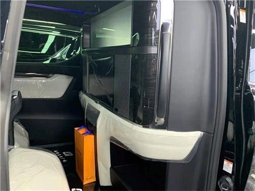 内饰方面,打开车门,一股豪华气息扑面而来,新车提供纯黑色内饰和黑白撞色内饰两种风格可选,中控台部分搭载一款方正的大尺寸液晶显示屏,下方是对称式物理按键区,视觉效果十分上档次。三幅式多功能方向盘搭配握感厚实的档把,整体显得十分动感。7座车型采用了2+2+3的布局,配备了12.3寸中控屏幕,17扬声器、自动刹车、全景影像、卡片钥匙、车载电视等