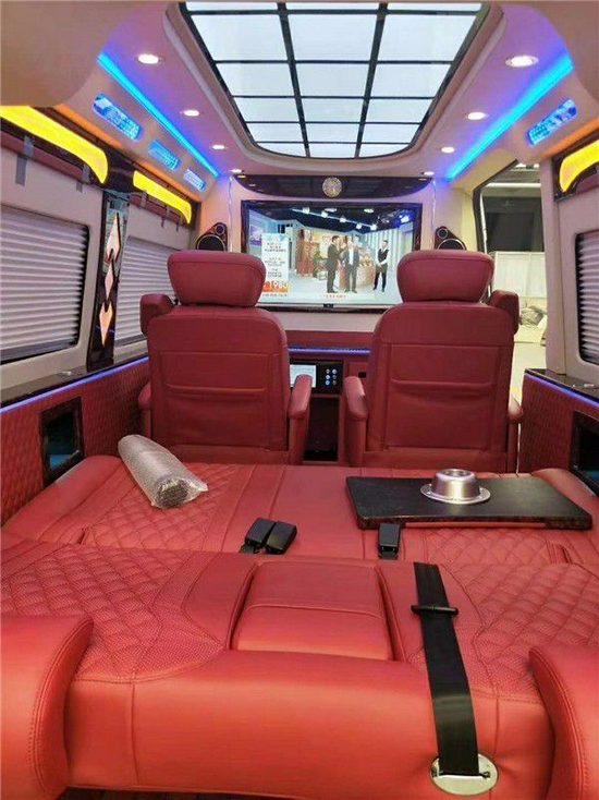 福特全顺作为一款经典的货车其性价比和实用性一直被广大全顺粉丝认可,也有很多人用福特全顺来改装房车和商务车,今天分享几组福特全顺的商务版改装案例,从高档到经济型都有,总有一款适合你。款红色案例也算是比较豪华的改装方案了,同样的隔断吧台升降电视,吊顶、沙发床、航空座椅应有尽有