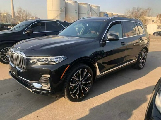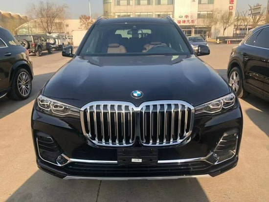 全新宝马X7 (配置|询价)两侧连接大灯组,外观做了开眼角处理,上下两条LED日间行驶灯做了上下眼眉,两组大型的远光灯被箭头式造型勾勒,下面的进气口采用大嘴式设计嘴角连接L型雾灯区,有种嘴角上翘的而感觉,远远望去非常有威严。