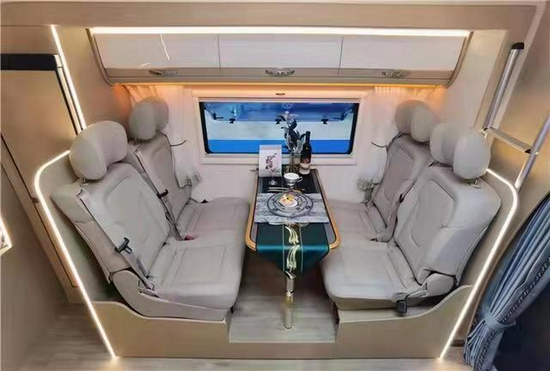 内部空间铂驰房车传承了星驰房车安全、健康、舒适、高端、定制等优质的设计理念。驾驶室采用了奔驰商务车的奢华装饰风格,多功能方向盘、电子档杆、地毯以及仪表台水转印等。