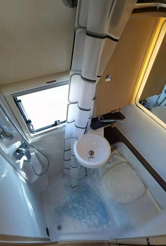卫生间采用一体式设计,赛特福德坐便器、换气扇、花洒、进口大宇洗衣机、外推窗配有隐私帘设计、可旋转的洗手台等功能,为我们提供良好的沐浴环境。