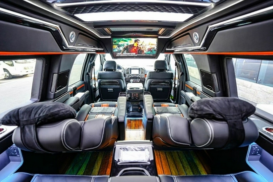 2021款国六福特F150勇猛者七座越野SUV报价及图片,福特勇猛者7座现车工厂直销这款内饰是比较经典的内饰。福特勇猛者有标准型和豪华型两款车型,豪华车型上粗壮横幅条的进气格栅是主推的款式。