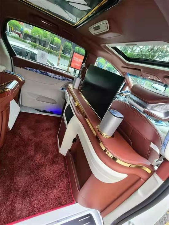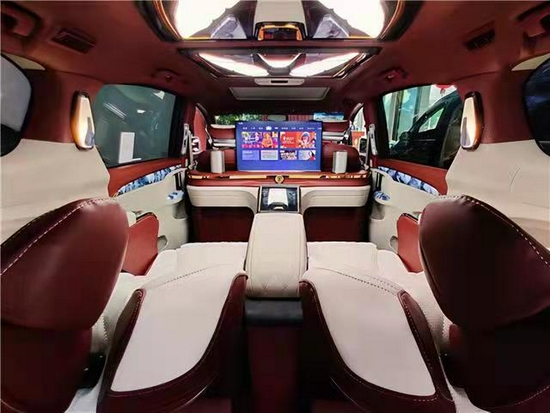 采用隔断式的设计,后舱的空间会相对减小从而不适合2+2+3的座位布局,所以直接采用两座的设计,这样不但保障了空间性,也让我们有更好的乘坐舒适体验。座椅我们采用头等舱航空座椅,具有通风、加热、按摩等功能,让我们的乘坐舒适度有质的提升,整体的豪华性足以媲美埃尔法等车型。