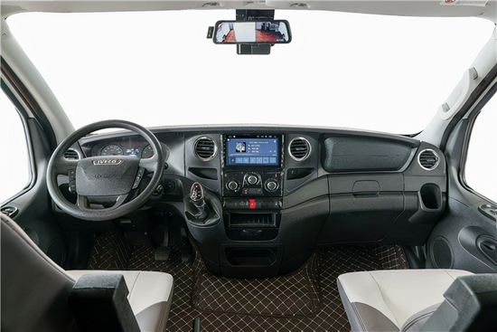 最新款依维柯欧胜 (配置|询价)底盘,3.0T柴油发动机搭配采埃孚原装进口八速全自动变速箱,150A+150A双发电机,前独立悬架,主驾驶悬浮座椅、副驾驶悬浮座椅+旋转180°。国六(b)排放标准,蓝牌C本可上路。底盘辅助方面,配备了电动加热加宽加长后视镜、胎压监测、定速巡航、多功能方向盘、车机手机互联、ESP、倒车雷达、倒车影像、遥控钥匙。整车尺寸5990x3195x2515mm,轴距3300(mm)整备质量3950KG,额定载人6人。