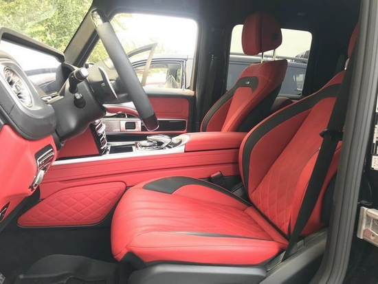 21款奔驰G63配置:标配略单选:磨砂黑金属漆,暗夜包(熏黑大灯,熏黑轮毂,熏黑备胎罩)22寸AMG轮毂,红色菱形格座椅,碳纤维内饰,碳纤维方向盘,黑钢琴包(黑钢琴内饰,黑钢琴方向盘)