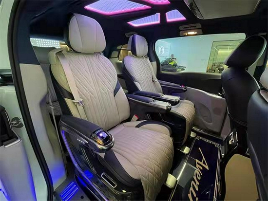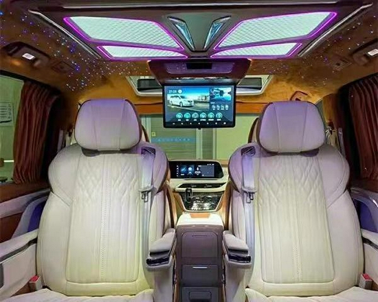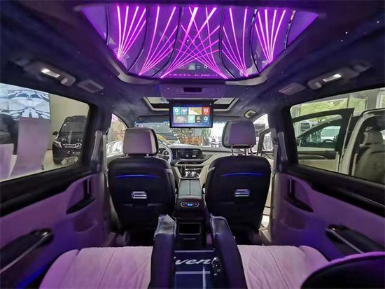 驾驶舱我们对方向盘、仪表盘、中控屏、扶手台、门板、座椅等这个的驾驶舱都有升级,增加我们整体的一个豪华性,以及我们的驾驶操控性,后排座椅为航空座椅,地板一般采用木质地板与水晶印花地板最为常见,顶部是蝶运顶灯与星空顶最为出色,颜色款式多变可根据心情对其进行调试。