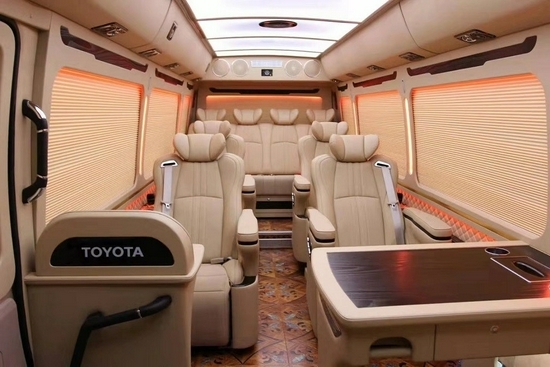丰田考斯特改装商务车对于乘坐空间的这一特点上来说,丰田考斯特车身长度为7.005米,身宽度为2.040米,车身高度为2.774米,高大的车身为我们提供了宽敞舒适大的乘驾空间。丰田考斯特改装商务车的内饰座椅的数量以及布局并非是一成不变,考斯特商务车的座椅数量可以从10座到23座不等的设计,但是车内的空间是相同的,座位数量越少,我们在车内就可以有更多的活动空间,或者添置更多的为我们的旅行提供方便的设备。
