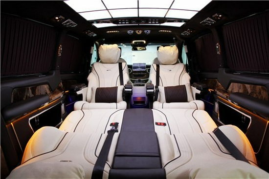 奔驰V级圣母峰-凯旋版全车地毯及窗帘均采用了进口的羊绒材质,在用料方面真的是很用心。第三排座椅不只可以坐人,在旅途劳累的时候也可以一键电动成床进行休息。