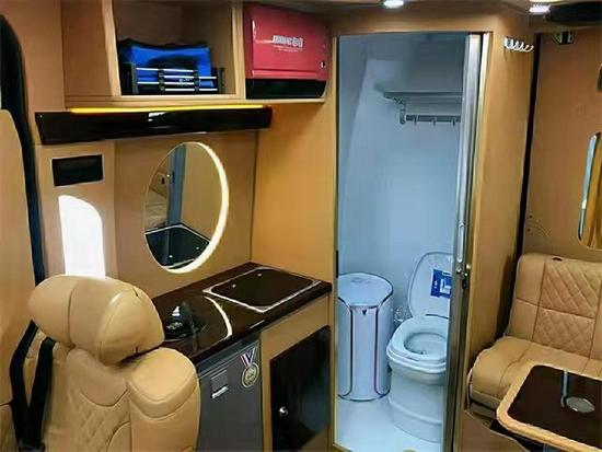 整车采用全隔断的布局,55寸超大的曲面电视搭配我们进口柏林之声音响,让我们在乘坐途中有良好的视听效果。华丽的吧台设计,配有随车钟表以及我们的储物格设计方便我们收纳一些物品以及酒水之类的物品,人性化的细节处理。