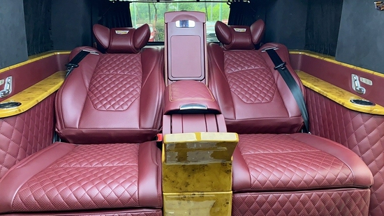 凯迪拉克总统一号桌椅设置操控屏,简单方便,扶手台影藏一个简约的储物柜。奢华游艇木地板,有种复古格调凯迪拉克总统一号凯迪拉克总统一号让你在商务谈判中更胜一筹,全车采用真皮包裹拥有透气性、电动按摩及电动加热系统,保证整了质感的同时也保证了座椅的舒适性。