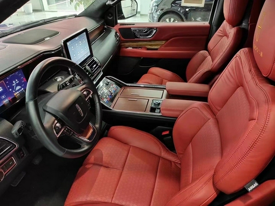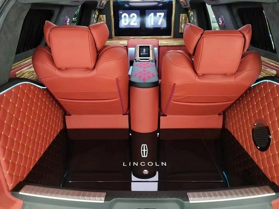 2021款林肯领袖一号后排的老板的航空座椅了,支持3档按摩,座椅的通风,加热,多段式的腿托,柏林之声的音响让你在出行还是商务的时候,都可以舒缓压力放松心情带来天籁般的感受,氛围灯可以多种颜色的切换,全看老板心情,后面前后双电视可以看任何大片,电动窗帘,电动的桌板还有咖啡机都是标配,老板座椅对面还有两个可以折叠的秘书座椅;