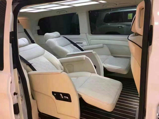 奔驰威霆改装项目清单(包括但不限于):航空座椅、沙发床、柚木地板、全隔断、带升降电视、半隔断吧台、桃木方向盘、方向真皮包、覆仪表台真皮包覆、驾驶座真皮包覆、驾驶座电动调节、驾驶座电动加热、驾驶座电动通风、驾驶座电动按摩、驾驶座气动按摩、驾驶座加棉、驾驶舱鹿皮顶、后舱鹿皮顶、后舱星空顶、九宫格顶灯、ABCD柱鹿皮包覆、遮阳板鹿皮包覆、驾驶位门板真皮包覆、中门门板真皮包覆、后尾门门板真皮包覆、全车侧壁真皮包覆、全车私密手动窗帘、主副驾驶中央扶手箱、主副驾驶扶手带冰箱、吸顶电视、主副驾驶靠背小桌板、可拆卸小桌板车、车内氛围灯、等其他项目。