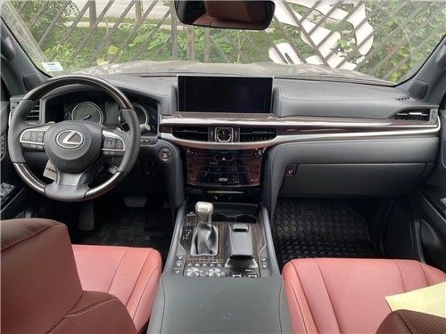21款雷克萨斯570黑曜版中控台及仪表台上方的材质为软性真皮包裹,材质优越,按键及按钮手感好。仪表盘和音响系统控制面板遵循LX的未来设计风格,呈现简洁与易操作的特点。四幅多功能方向盘样式显得很稳重,排档杆面板及行驶模式控制面板都呈现厚实的金属感。