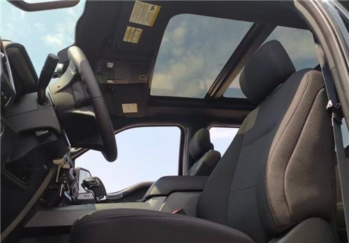 进口福特猛禽F150车内配备标准独特的皮革和布艺装饰的座椅,驾驶员侧的电动十向调节。这些座椅同时具备记忆功能。中央控制区搭配了触控式显示屏,其下方则是多媒体控制区及空调面板,采用旋钮物理按键的组合。中控功能区域可分为三个小控制区,最上端为音响控制及导航控制,中间为收音机调节控制,最低端为空调及座椅加热控制。