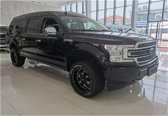 2021款中规版福特F150勇猛者SUV以美国进口的福特F150为原型车,精工打造,通过后尾箱与车体的连接,形成与车身稳固的一体式车厢,同时在原有五座的基础上,加装第三排真皮座椅,中规版福特·F150勇猛者。2020款中规版福特 F150 勇猛者SUV 在保留其原型车强悍性能的同时合理利用尾箱空间,将其打造成为一个大型豪华舒适的7座型SUV。