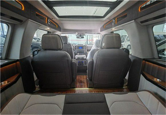 2021款福特勇猛者后排座椅选装了两个丰田埃尔法 (配置|询价)的座椅,将7万元的价格说起来还是有些小贵的,不过好在座椅配置还算说得过去,支持各种电动调节而且还带座椅加热功能,就是柔软度比较一般,并没有像想象中的大沙发一样。