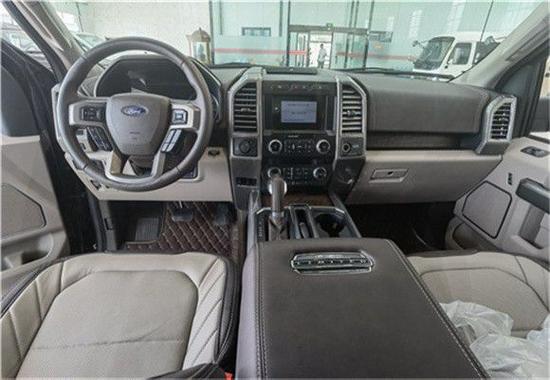 福特F150猛禽改装六座SUV内饰方面,配备标准独特的皮革和布艺装饰的座椅,驾驶员侧的电动十向调节,同时具备记忆功能,中央控制区搭配了触控式显示屏,其下方则是多媒体控制区及空调面板,采用旋钮+物理按键的组合。中控功能区域可分为三个小控制区,最上端为音响控制及导航控制,中间为收音机调节控制,最低端为空调及座椅加热控制。