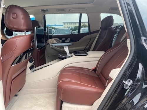21款迈巴赫GLS600新车提供四座布局,四座车型第二排独立座椅相比普通版GLS更加靠后,并且带有巨大的腿拖,其后排座椅最大倾斜角度大43.5度,后排腿部空间最大达1.34米。中央由冰箱、控制台、储物空间和手机无线充电台等进行贯穿,呈现出类似于迈巴赫S级 (配置|询价)一样的头等舱设计。