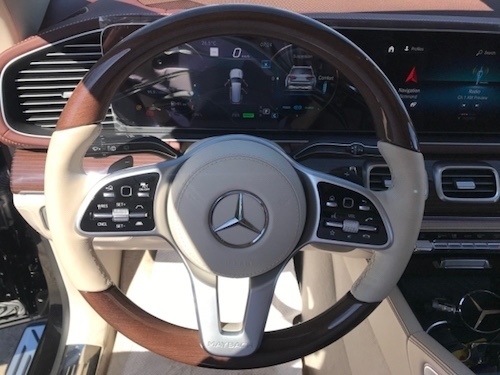 21款迈巴赫GLS600使用家族最新的设计语言,带有一体式大屏、氛围灯等配置,做工极其考究,豪华感扑面而来。方向盘、中控台等处都使用了实木、真皮等材质,触感、观感都无可挑剔。外观专属的迈巴赫品牌标识压印在车头、轮圈、D柱、车尾等位置,搭配别具一格的双色车漆,它时刻彰显着自己不同于奔驰GLS (配置|询价)的尊贵身份。