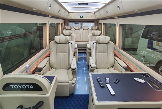 丰田考斯特10座在内饰的设计上可以安装舒适的沙发床以及多个原装进口的埃尔法 (配置|询价)座椅,可以带给我们更加舒适的乘坐体验,但是丰田考斯特17座受于车内空间的限制就不能够安装沙发床这样的设计,而且内饰座椅的设计上也会有一些限制和束缚,真皮座椅是丰田考斯特17座最合适的选择或者再加上一个可旋转的航空首长席,内饰的设计的不同是丰田考斯特改装商务车价格不同的主要原因