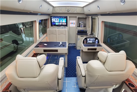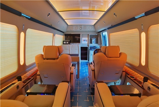 豪华版丰田考斯特改装商务车车身颜色为米黄金色,密封玻璃航空外摆门,高级版丰田考斯特外观为上坨下白色,推拉玻璃折叠门,而行政版的车身颜色为香槟色,我们可以从外观上看出这三款不同车型的设计,改装多是以豪华版商务车为基础,因为大气的色彩更加适合商务活动的需要。