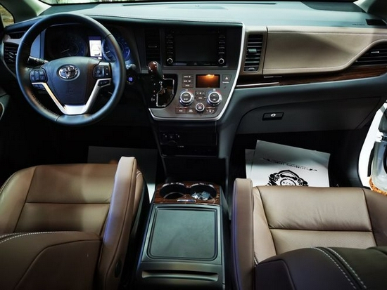 20款丰田塞纳四驱LTD的内饰:桃木镶嵌的中控台更显格调高雅,方向盘集成多种功能,操作便利。方向盘集成多种功能,操作便利减少对安全的影响并且带有语音控制。