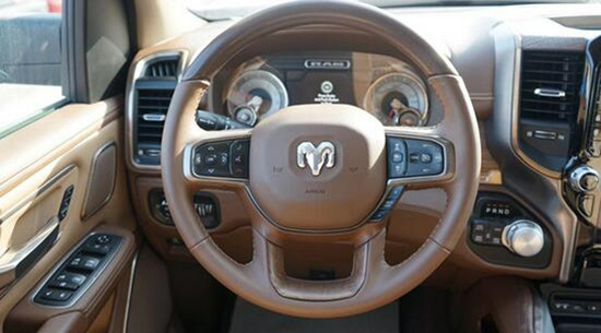 21款道奇公羊大角牛皮卡在内部设计上还是延续了美式那种比较粗犷的风格,规整的中控台设计看上去比较死板,但丰富的配置会让你不由得为其称赞。中控台的设计简洁硬派,符合公羊的气质。仪表盘底边有花纹,则更加凸显了这款车的文雅性。软性材质的仪表台设计,摸上去手感非常舒服,并无些许生硬之处。