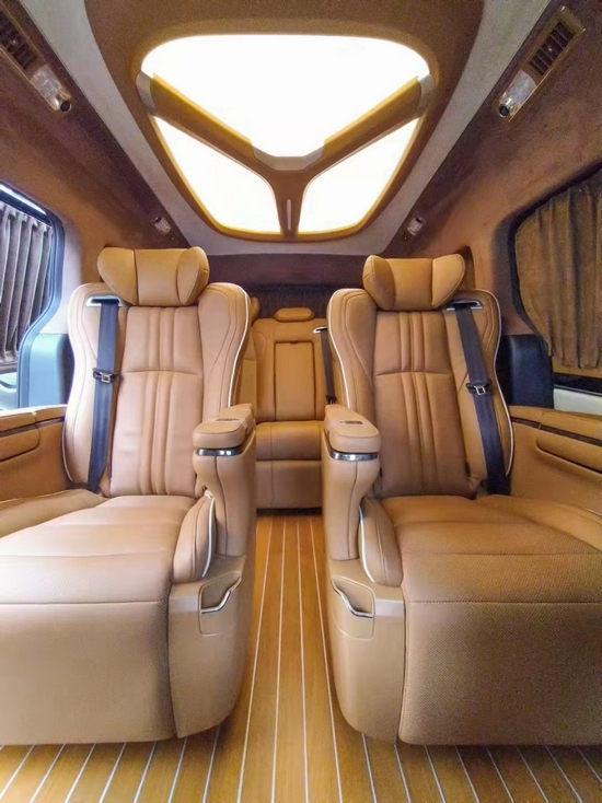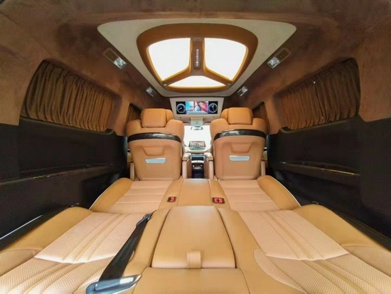 航空座椅、高级皮质包覆工艺、麂皮绒顶部包覆、华丽的LED顶灯设计,半隔断电视以及车载音响,整体的内饰升级提升我们整车的豪华性,也让我们的乘坐舒适度与日常的娱乐效果有宽越式的提升。