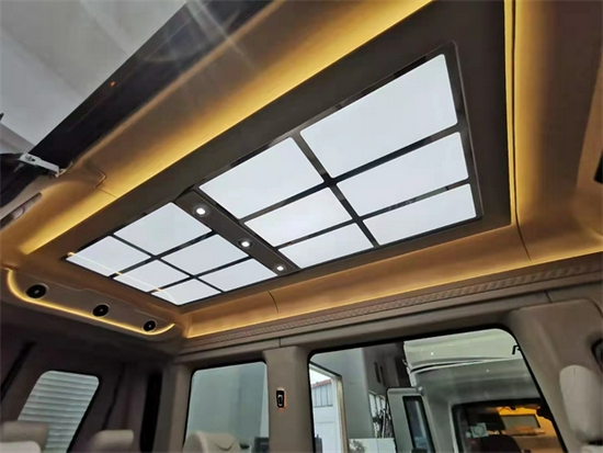 电器方面:超宽屏车载娱乐系统,11L车载冰箱,壁灯,电视机顶盒,氛围灯,附加电瓶65AH,车载1500W逆变器。