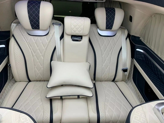 2021款奔驰V260商务车全车隔音、隔热、减震技术处理,碳纤维车顶,大理石地板,Nappa小牛皮包裹多功能座椅,后排座椅带通风加热、气动按摩功能,电动可调节的升降腿托,仰卧倾倒,前后移动,乘坐非常舒适和享受。