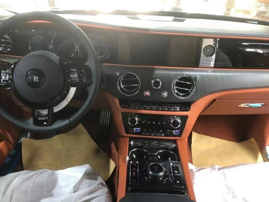 劳斯莱斯--古斯特纯手工打造的内饰,处处都体现着精致感,由2000名工人,经过60双手,花费至少20天打造。三辐方向盘尺寸适中,握起来很舒服。控台配有一块石英表,看起来很复古,与劳斯莱斯车型的高贵相互映衬。中控台配备了10.25英寸显示屏,集成了导航、多媒体、蓝牙电话、行驶信息等。通过类似iDrive的旋钮区域控制,也带有手写功能。