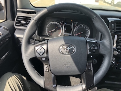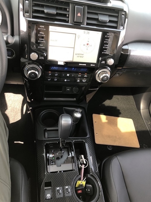 新款丰田超霸整体还是非常像普拉多 (配置|询价)的,中控面板采用了更多的银色镀铬设计,4Runner为了提升档次还在内饰加装了木纹饰板,中控整体为黑色,与座椅的橙色相互搭配。淡化了居家感,但更加运动,配色也更耐脏。整体中控的设计是丰田家族式设计,用在这个级别的越野SUV上,易读易用,结实抗造。