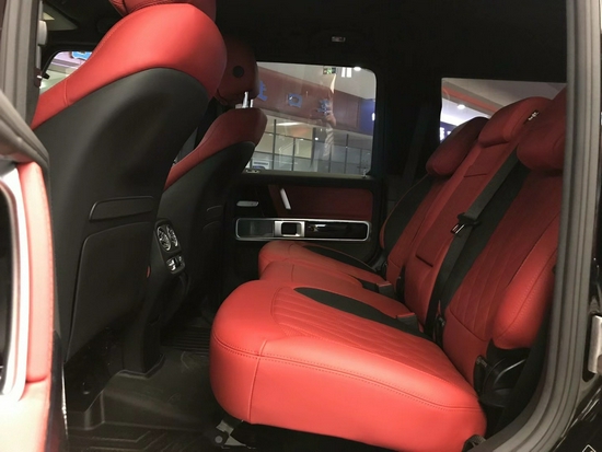 21款奔驰G63前排座椅和后排座椅可加热 前排座椅可电动调控前排座椅有记忆功能有头靠 后排座椅可折叠 AMG地毯另外,这款车还配备了舒适包,所以还带有通风加热以及按摩功能,就算是长时间驾驶也不会有不适感。让你时刻保持最佳的驾驶状态。然后它的座椅上方依旧带有着AMG标志。