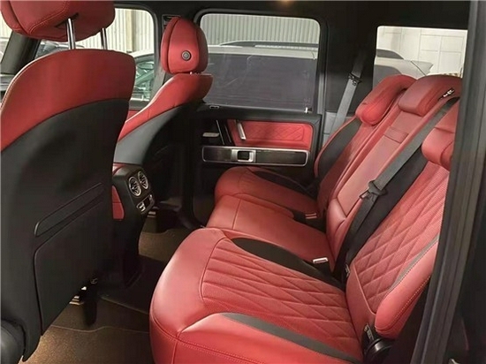 21款奔驰G63前排座椅和后排座椅可加热 前排座椅可电动调控前排座椅有记忆功能有头靠 后排座椅可折叠 AMG地毯另外,这款车还配备了舒适包,所以还带有通风加热以及按摩功能,就算是长时间驾驶也不会有不适感。让你时刻保持最佳的驾驶状态。然后它的座椅上方依旧带有着AMG标志。