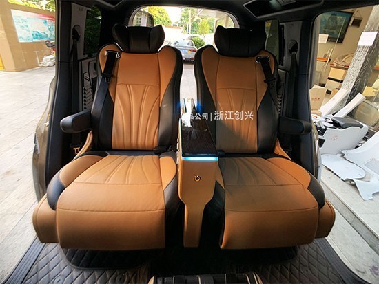 为什么说不宜长久乘坐呢?因为靠背太直了也比较硬,坐久会有点费腰,唯一可以改变它的方法是把后排换成航空座椅,原车五座变四座或者七座变四座,反正都是变四座,之后可以给予后排多功能调节和一些实用的电子功能,比方说通风、加热、按摩、手机无线充电等等。