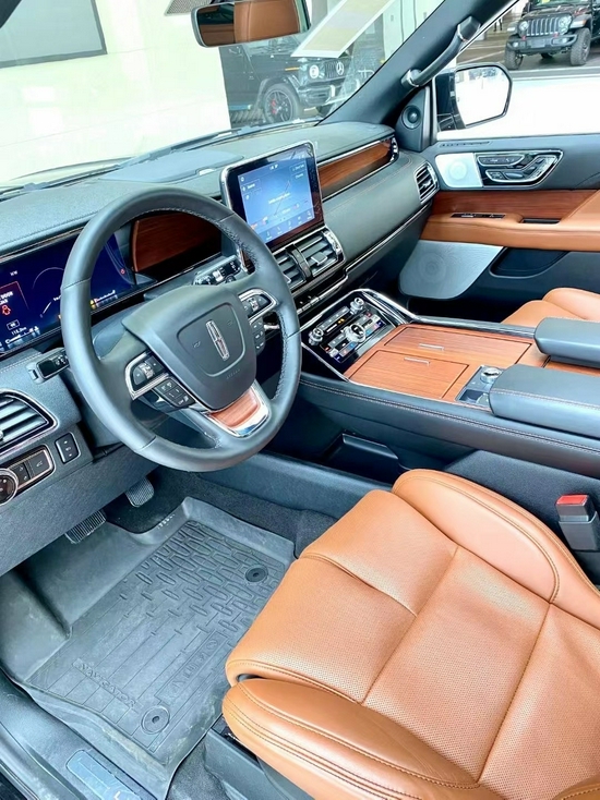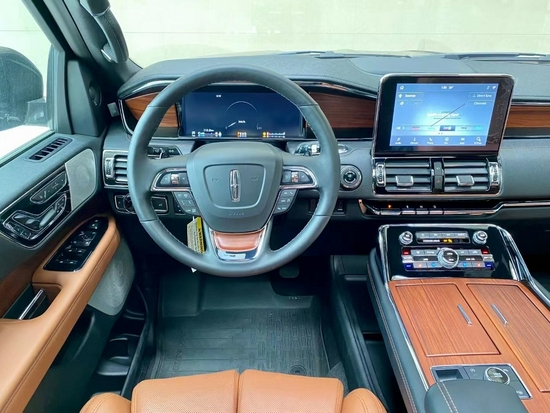 21款林肯领航员 新款三幅式多功能方向盘带加热功能,真皮包裹方向盘兼具温润触感与典雅质感,三幅式设计令操控更加得心应手,在尊崇气息之上添一分动感魅力。真皮部分可在短时间内加热,即便在寒冷的天气状况下,也能保持对温度的掌控感。内饰豪华气派,做工精细。车内大量皮质和实木材覆盖,让人即刻尊享定制体验。新款林肯领航员采用12英寸全液晶的仪表盘,悬浮式显示屏,科技感十足。
